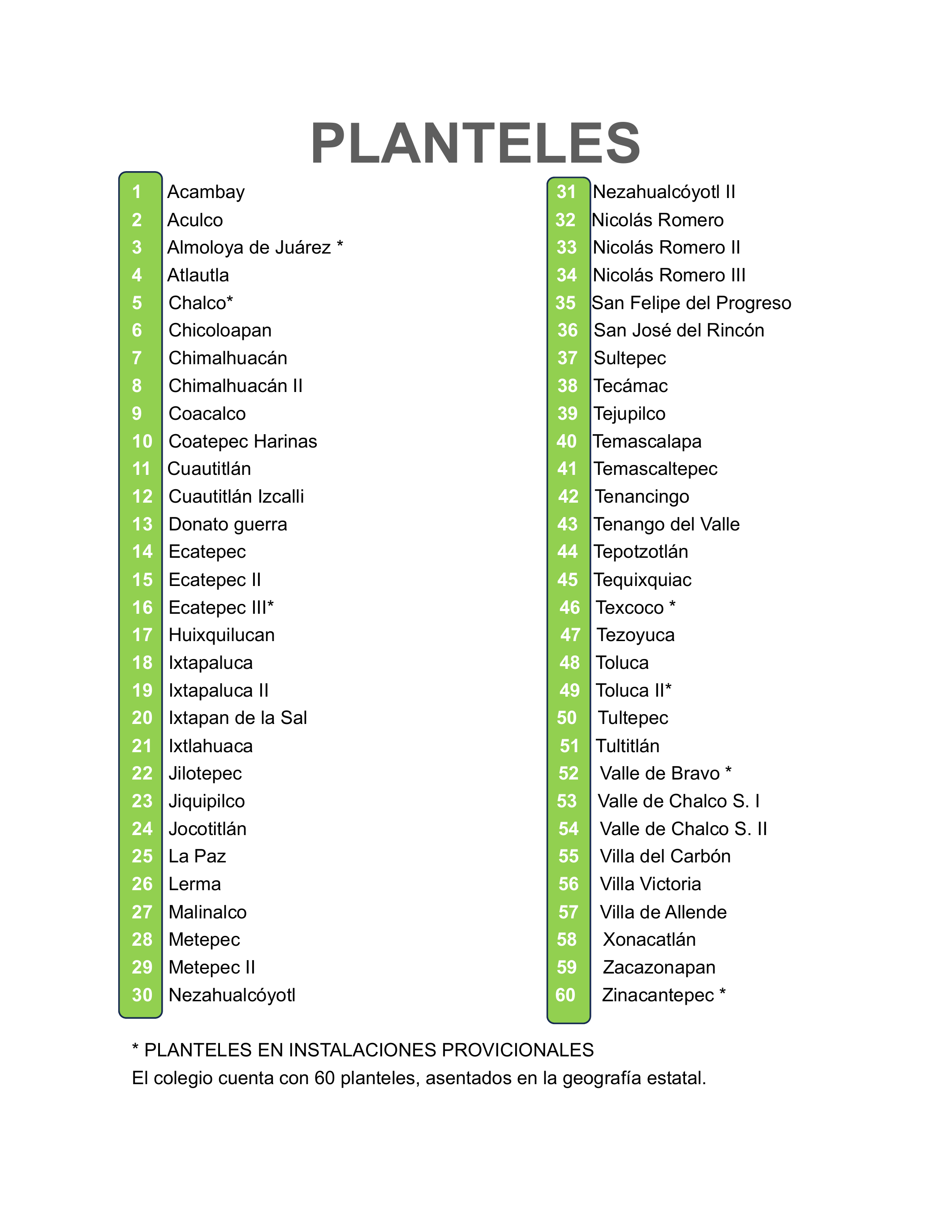 El colegio cuenta con 60 planteles, asentados en la geografía estatal.